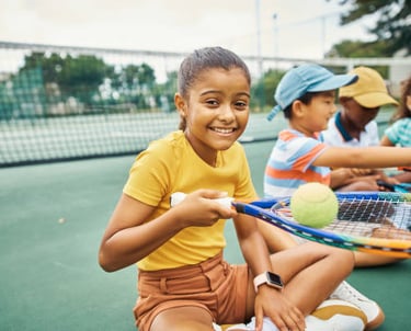 Helps with gross and fine motor skills through handling the racquet, different shots and developing muscles through running and hitting movements